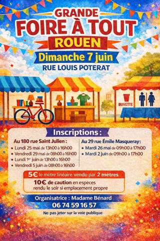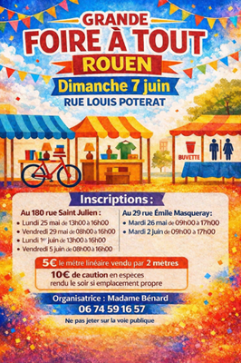Dimanche 7 juin rue louis poterat et ces rues adjacentes venez chiner, vendre ou simplement profiter de l'ambiance festive !