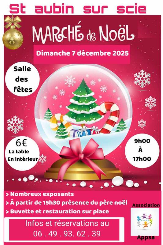 Marché de noël organisé dans un accueille chaleureux. Buvette et restauration sur place . Présence du père noël à partir de 15h30.
