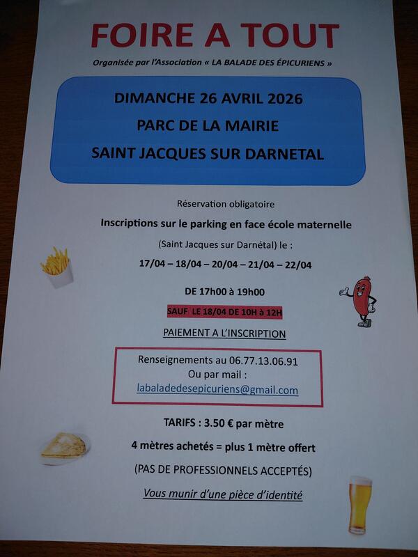 "la balade des épicuriens" organise sa 2e foire a tout dans le parc de la mairie (nous espérons que cette fois-ci le le beau temps sera présent)