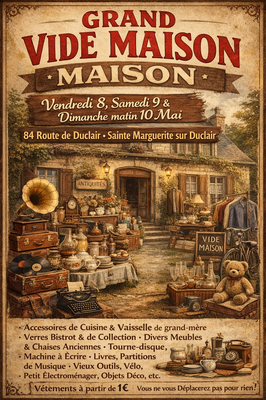 à ne pas manquer ! Nous organisons un grand vide maison avec de nombreux objets anciens et de charme