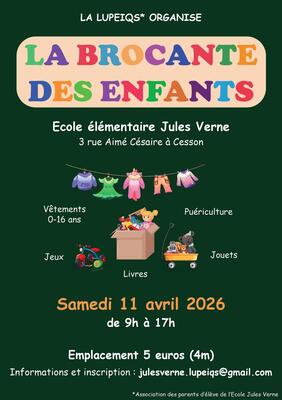 L'association des parents d'élèves de l'école jules verne (la lupeiqs) organise le 11 avril 2026 sa brocante des enfants.