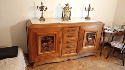 2 bz, 1 canapé cuir, 2 lits superposés, 2 meubles bas de salle à manger, 1 table en chêne massif avec 2 rallonges avec ses 5 chaises, 1 machine à coudre ancienne, 2 fauteuils bois,