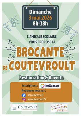 L'amicale scolaire de coutevroult est ravie de vous inviter à sa traditionnelle brocante annuelle. Que vous soyez chasseur de trésors, amateur de seconde main ou simplement adepte des balades dominicales, cet événement est fait pour vous !