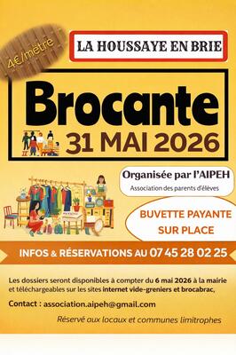 Brocante organisée par l'aipeh (association indépendante de parents d'elèves hulsétiens). Restauration sur place : buvette de l'aipeh proposant des formules sandwichs, paninis, crêpes maison, misterfreezes, boissons..