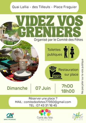 Le videz vos greniers du comité des fêtes se déroulera en bord de seine le dimanche 07 juin.