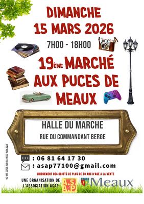 C’est officiel ! Le 19ème marché aux puces de meaux aura bien lieu le dimanche 15 mars 2026 prochain.