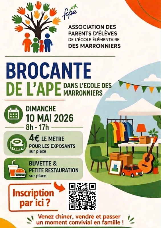 l’association des parents d’elèves des marronniers organise sa grande brocante dans la cour de l’établissement !