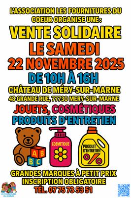 venez participer à notre grande vente solidaire organisée par l’association les fournitures du cœur