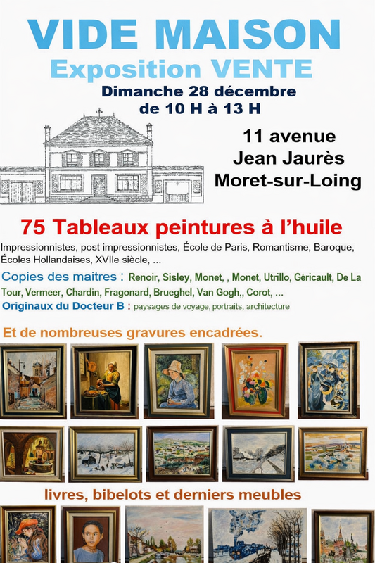 copie des maitres : renoir, sisley, monet, , monet, utrillo, géricault, de la tour, vermeer, chardin, fragonard, brueghel, van gogh,, corot, …