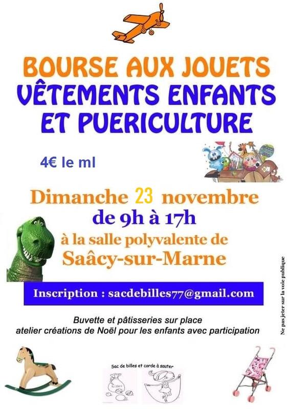 Bourse aux jouets et puériculture le 23 novembre de 9h à 17h à la salle polyvalente de saâcy sur marne