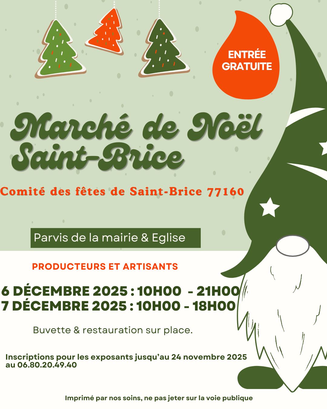 Le comité des fêtes de st-brice (77) sera heureux de vous accueillir, exposants amateurs-professionnels et visiteurs) les samedi 06 & dimanche 07 décembre 2025 pour son marché de noël ! Ambiance festive et bien sûr esprit de noël !