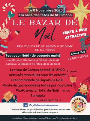 Le bazar de noël des écoles de st siméon et st rémy fait son retour pour sa 3eme édition.