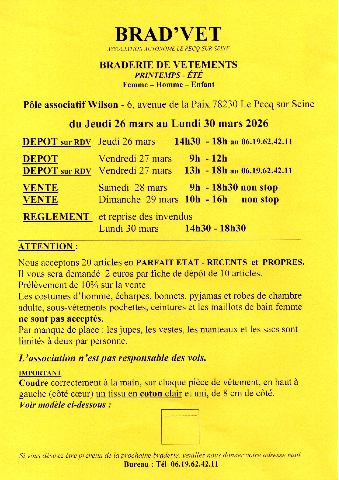 dépôt libre vendredi 27 mars de 9h à 12h et dépôt sur rdv de 13h à 18h