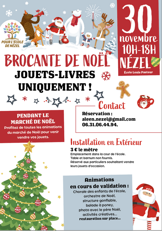 À l'occasion du marché de noël des artisans, l'école de nézel organise sa première brocante entièrement dédiée aux jouets et aux livres. Les visiteurs pourront donc découvrir des artisans mais aussi venir faire de bonnes affaires pour réduire le budget cadeaux.