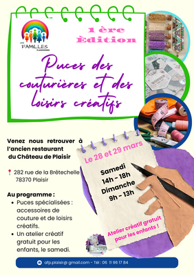 L'association des familles plaisiroises vous invite à la 1ère édition des puces des couturières et des loisirs créatifs les :