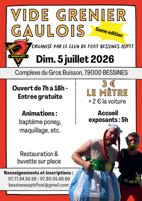 5eme édition du vide grenier gaulois, organisé par le club de football de bessines asptt.