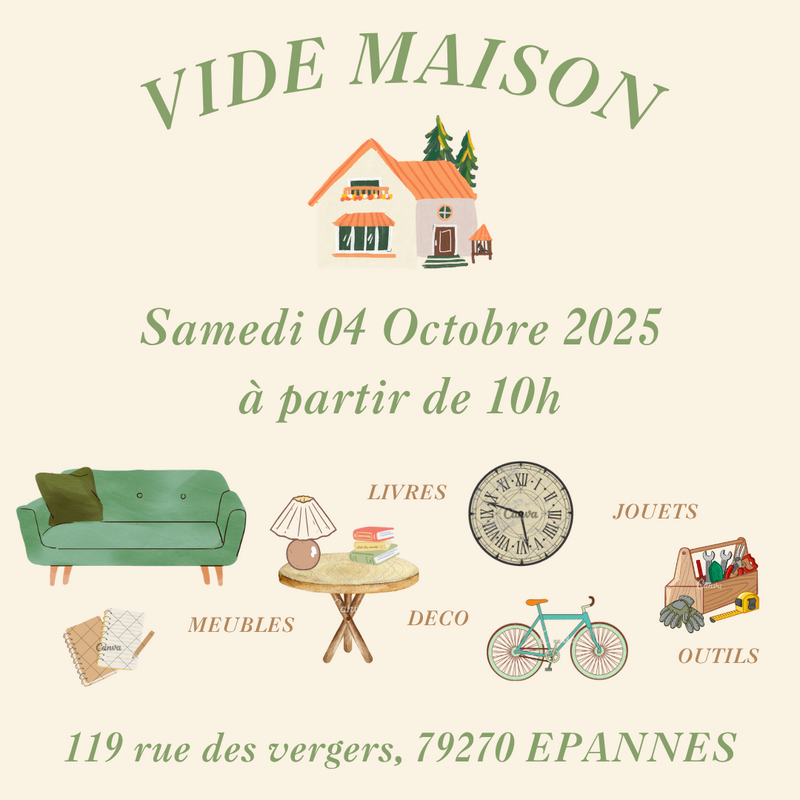 nous organisons ce samedi 04 octobre, à partir de 10h, un grand vide maison au 119 rue des vergers 79270 epannes.