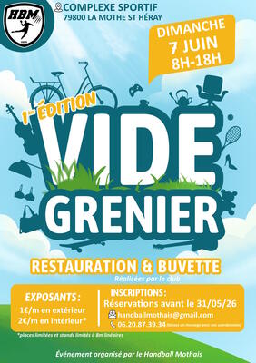 Vide grenier en extérieur (autour du complexe sportif et en intérieur : salle polyvalente).