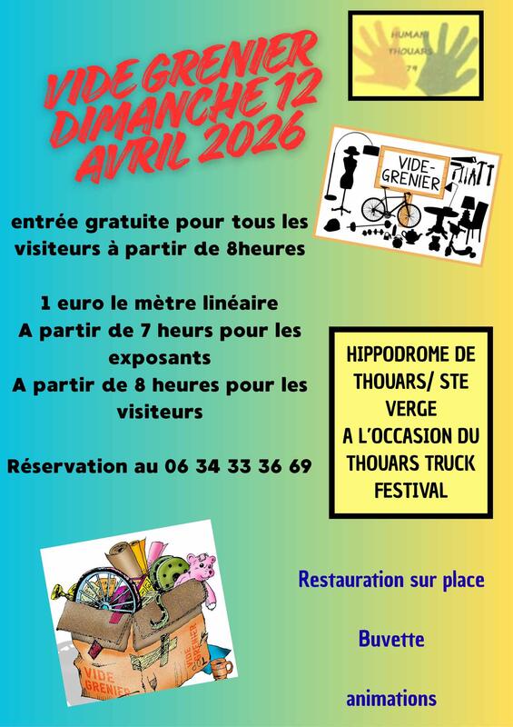 Lors du thouars truck festival 2016 nous organisons un rassemblement de camion ,manège, stand professionnel feu d artifices le samedi soir avec concert et dimanche vide grenier une partie des bénéfices récolter seront remis a une association main dans main