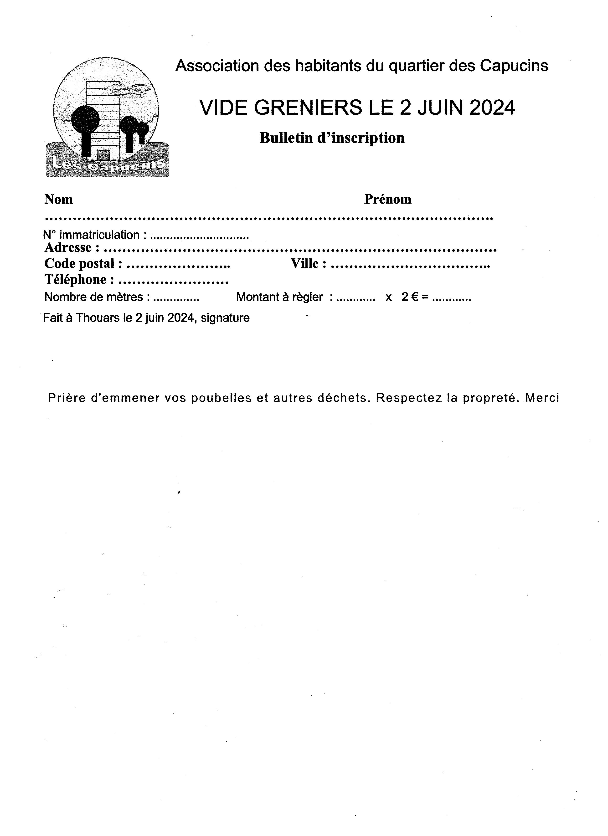 Vide greniers marrons bernache association des capucins