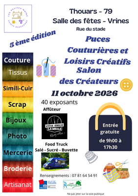 5 ème edition des puces couturières et loisirs créatifs, salon des créateurs . Ouverts aux particuliers et professionnels.
