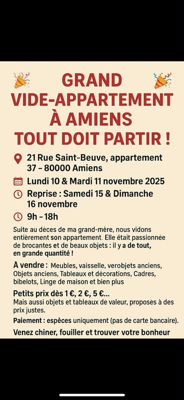 suite au dèces de ma grand-mère, nous vidons entièrement son appartement. Elle était passionnée de brocantes et de beaux objets: il y a de tout, en grande quantité !
