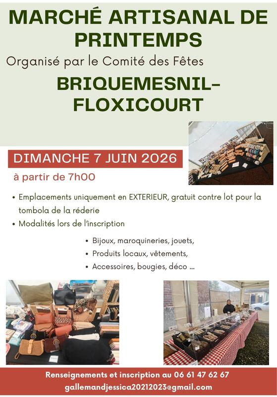 Pour sa 3ème année consécutif, la commune de briquemesnil-floxicourt organise son marché du printemps, ouvert aux professionnels et aux artisans.
