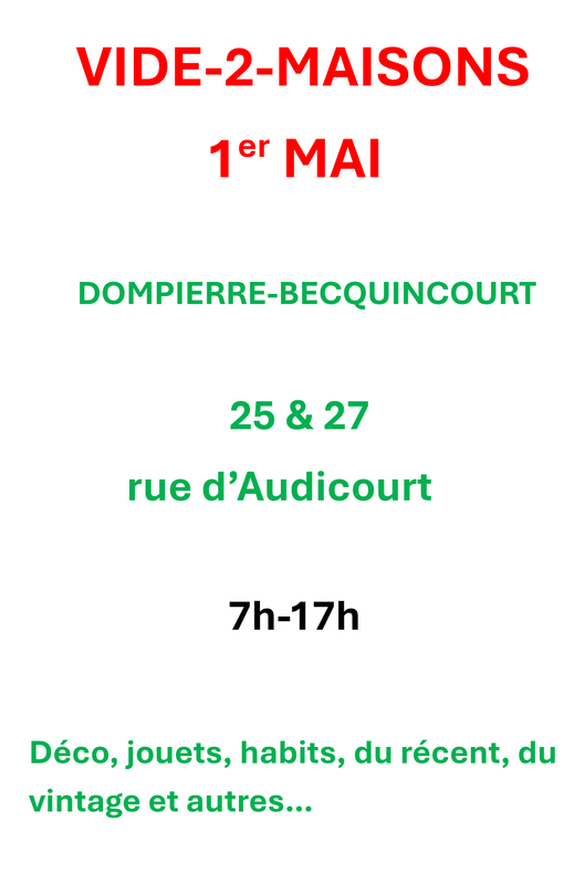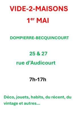 Au 27 rue d'audicourt, le vide-maison se prolongera le 2 mai, de 9h à 17h.