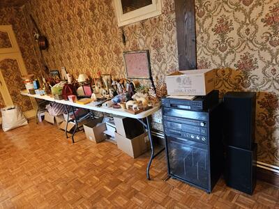 Vente de meubles, electroménager,vêtements,outils, objets de décoration divers ,vaisselle,livres, bd, disques,cartes postales, revues anciennes, collection sur le general de gaulle.