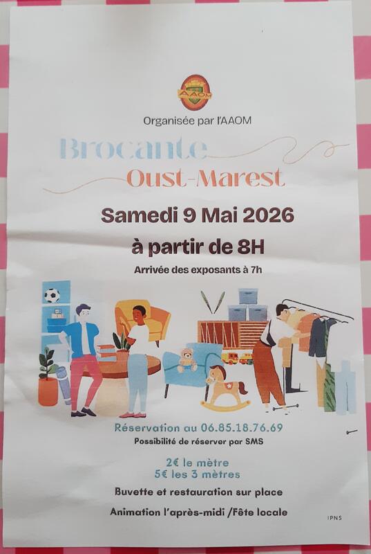 Brocante organisée par l'aaom de oust-marest venez nombreux chiner et profitez des animations l'après-midi et aussi de la fête locale.