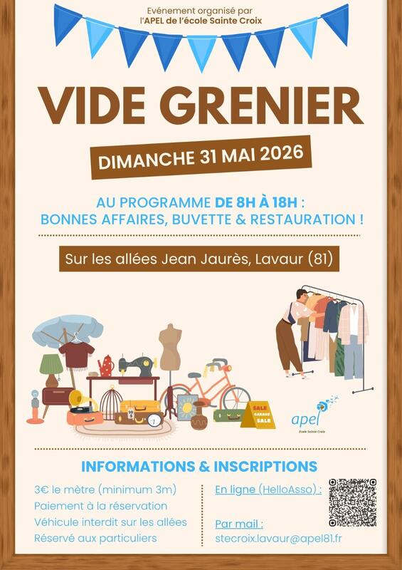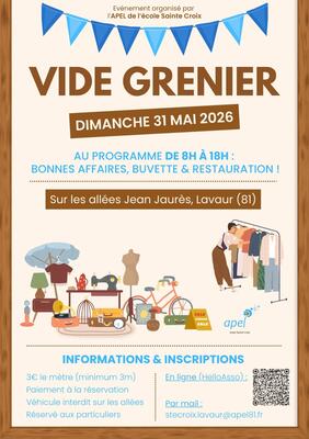 Vide grenier organisé par l'apel de l'ecole sainte croix à lavaur.
