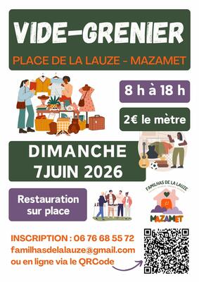 L'association de parents d'élèves familhas de la lauze organise son vide-grenier sur la place de la lauze à mazamet le dimanche 7 juin. Nous vous proposons une possibilité de restauration et boisson sur place pendant toute la journée.