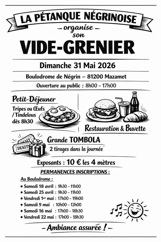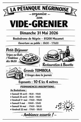 permanence au boulodrome de negrin jusqu'à épuisement des emplacements.
