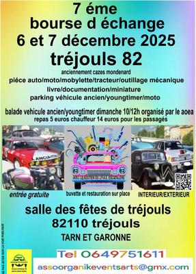Bourse déchange de pieces autos motos anciennes, livre, miniature etc, intérieur/extérieur, buvette et restauration sur place