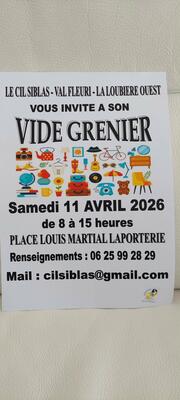 Le cil siblas val fleuri la loubière ouest vous invite à son vide greniers le samedi 11 avril 2026, place louis martial laporterie. Nous vous attendons nombreux.