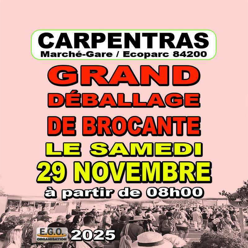 Grand déballage de brocante marché-gare / écoparc – 84200 carpentras samedi 29 novembre – de 08h00 à 16h00