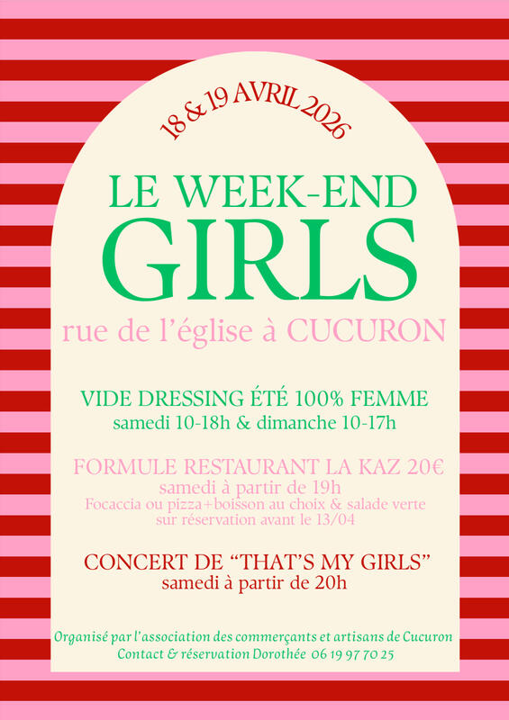 Vide dressing été femme, le samedi de 10 à 18h et le dimanche de 10 à 17h. Concert offert par l’association le samedi de 20 à 22h, groupe that’s my girls de briançon