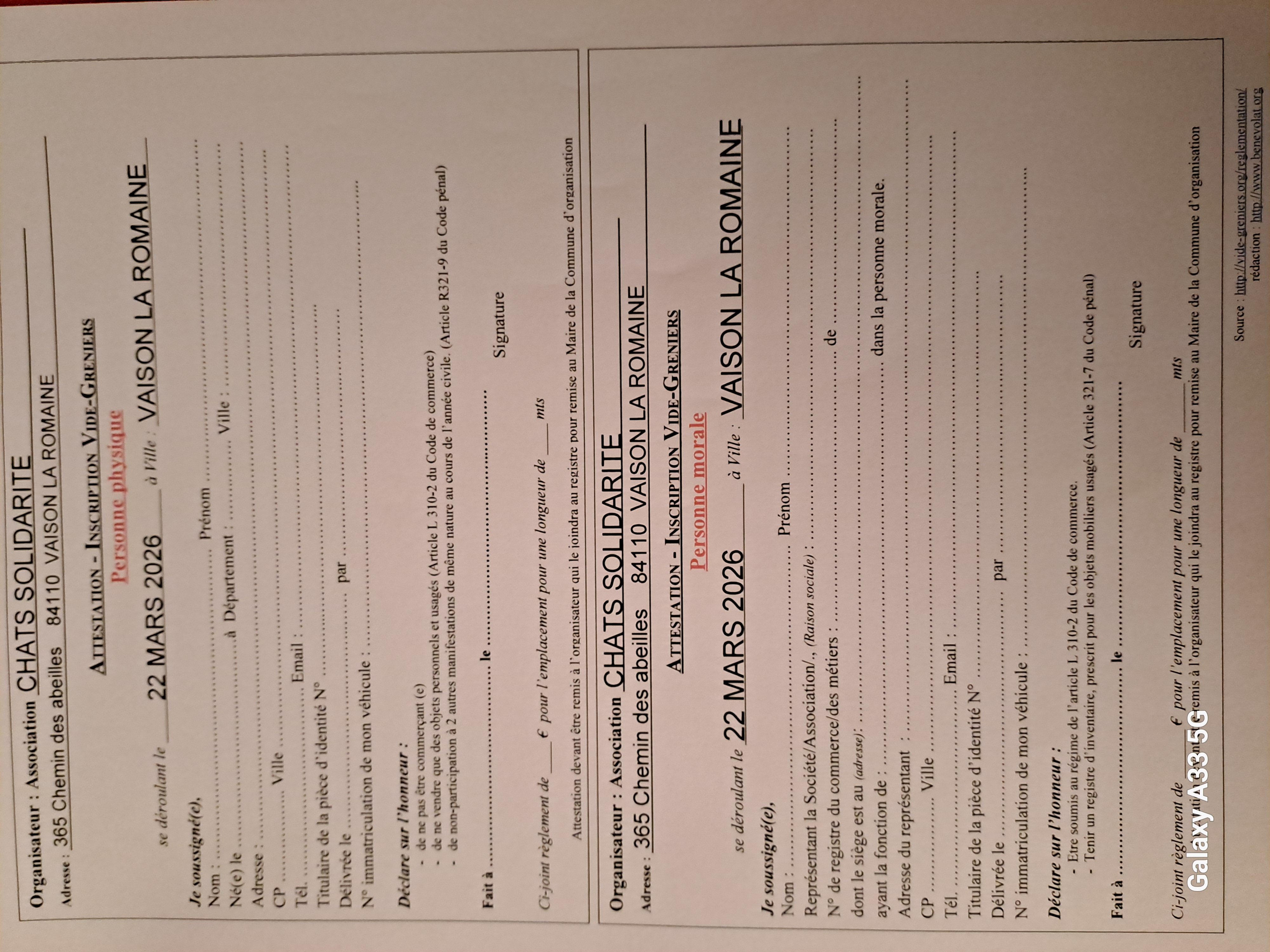 Chats solidarite organise son vide grenier annuel (environ 170 emplacements)