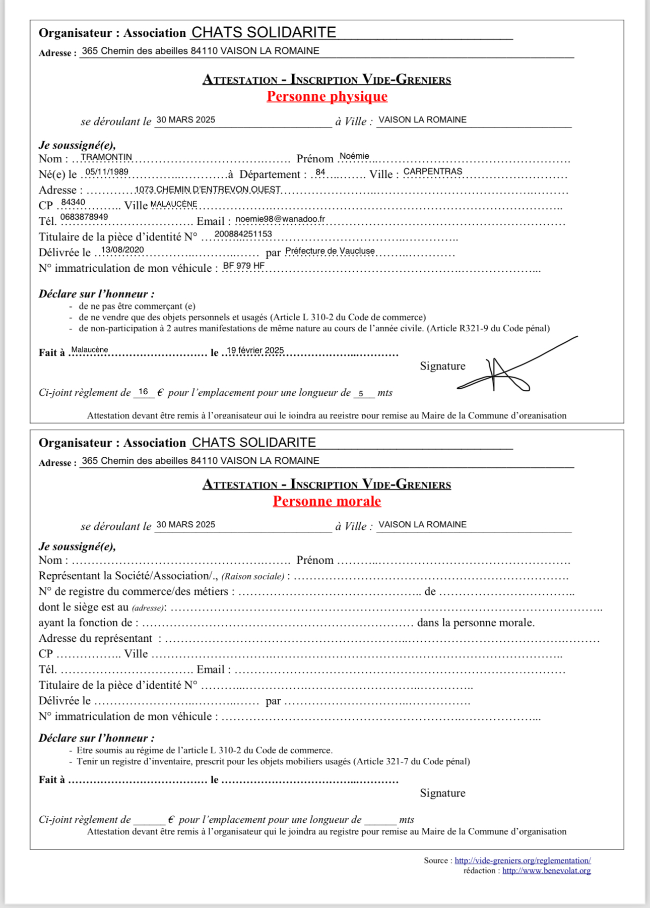 Chats solidarite organise son vide grenier annuel (environ 140 emplacements)