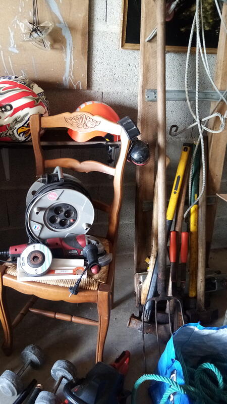 Compresseur, casques et gants moto, tronçonneuse, poêle à petrole +pétrole, vtt 27p,outils,coins,fil aciers, corde, chaise, petit meubles, frigo, gaziniere, télévision, ordinateur..