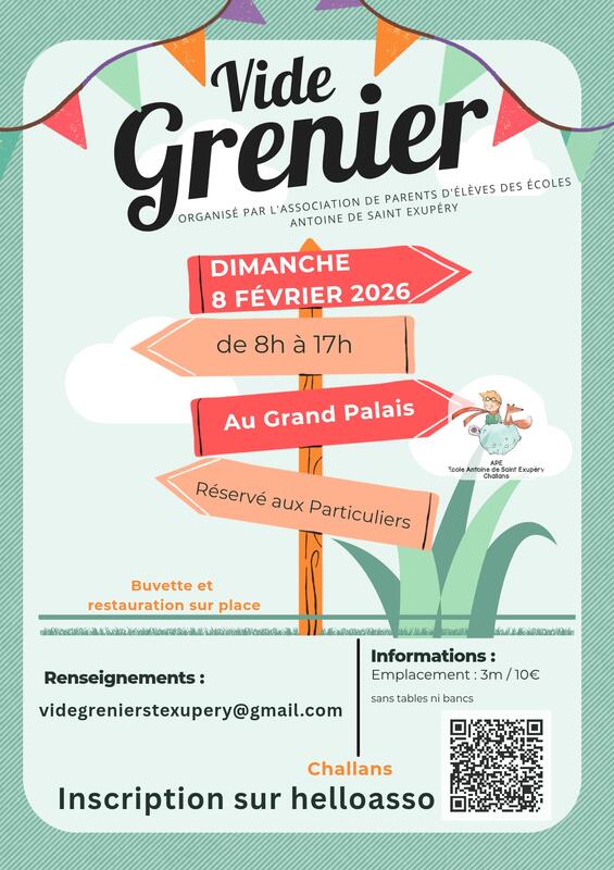 Inscriptions sur helloasso: https://www.helloasso.com/associations/ape-antoine-de-saint-exupery/evenements/vide-grenier