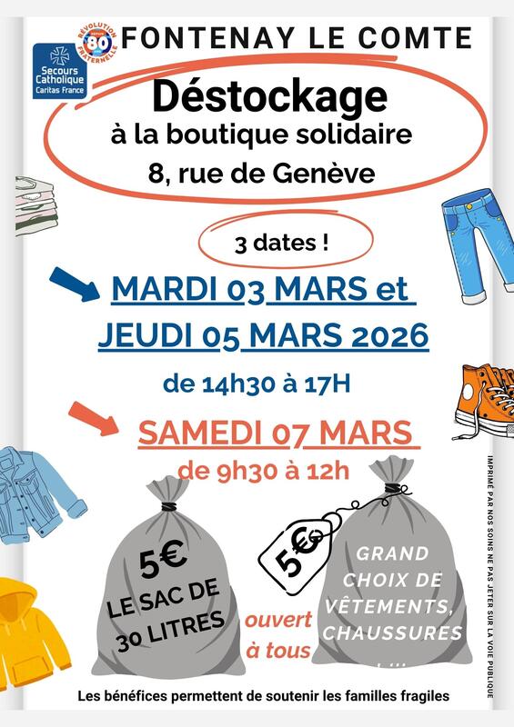 5 € le sac de vêtements dans un sac confectionné et offert par les bénévoles. Un geste solidaire et écoresponsable pour soutenir les familles en précarité.