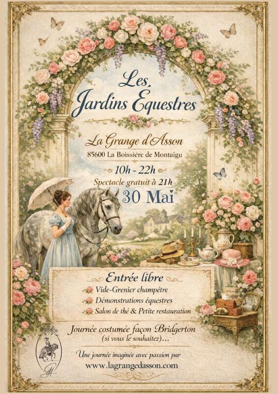 À l’occasion des portes ouvertes de la grange d’asson, nous organisons un vide-grenier. Mais la journée sera bien remplie ! Visite du musée du cheval et de l’amazone, animations équestres et spectacle à 21 h