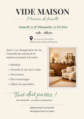 Nous organisons un vide-maison avec la vente de l’ensemble du contenu de la maison :