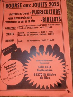 Bourse aux jouets puériculture bibelots vêtements ski-fête..