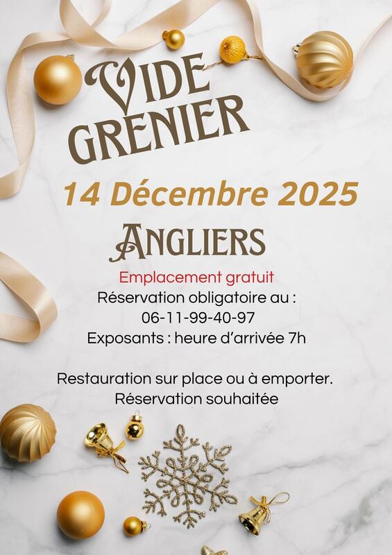 Vide grenier et marché du bien être de l artisanat et de la créativité dimanche 14 décembre à angliers 86. Emplacement gratuit. Restauration sur place ou à emporter. Organisé par l association pattes de loup.