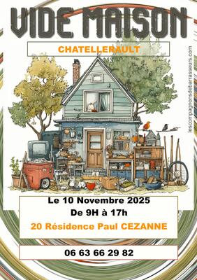 Nous organisons un vide-maison à châtellerault 20 résidence paul cezanne le 10 novembre de 9h à 17h.