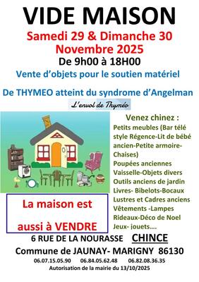Vide maison et vente d objets pour le soutien de thymeo atteint du syndrome d angelman