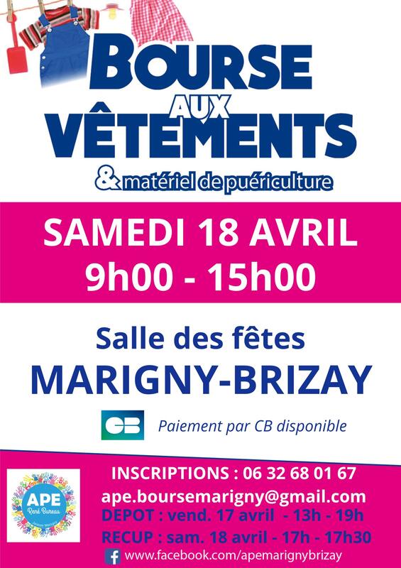 L'ape de l'école rené bureau à marigny-brizay organise sa prochaine bourse aux vêtements.