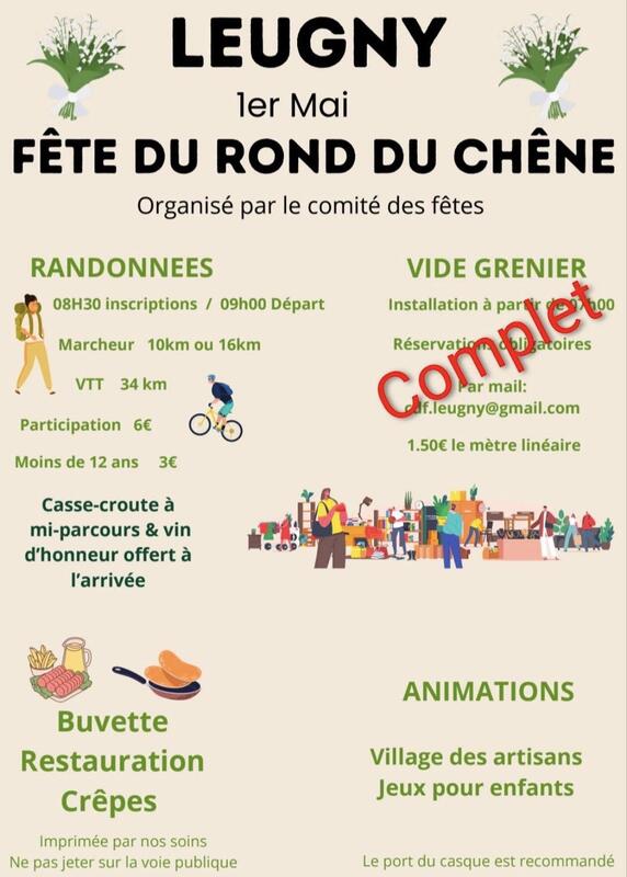 Vide grenier, journée de la fête du rond du chêne, randonnée vtt, randonné pédestre, cavalier etc... Animation buvette restauration crêpes village des artisans jeux pour enfants extérieur toilettes fête communale expositions